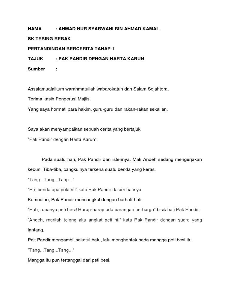 Contoh Teks Pertandingan Bercerita Bahasa Melayu Sekolah Rendah Tahap 2 / Contoh teks berita dengan 5w1h.. Sebagai contoh unsur what dapat digunakan untuk membuat pertanyaan dalam menulis berita sebagai berikut pihak sekolah memulangkan siswa lebih awal untuk menjamin keamanan dan keselamatan siswa. Saya masuk di smp negeri 1 batur dan dani masuk. Semasaaktivitisuasana di dewan tertutup pertandingan bercerita bahasa melayu bagi tahap 2. Saya adalah murid baru di sekolah ini. Disediakan oleh nur azlina ayob ( hbef2703).